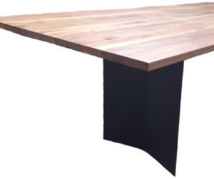 Tischplatte vollmassiv in Nussbaum, Asteiche oder Buche, Kantenprofil grade oder schräg, Untergestell geschlossene oder offene Stahlwangen schwarz oder anthrazit lackiert Erhältliche Masse: 240 x 100 x 74 cm 220 x 100 x 74 cm