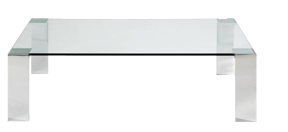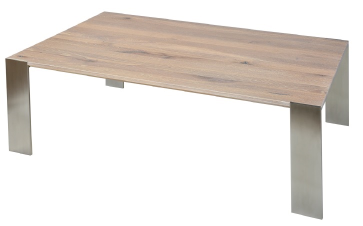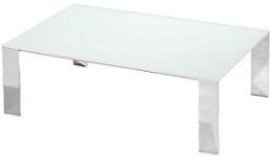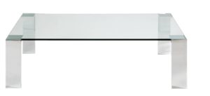 Tischplatte aus Holz, satiniertem oder Kristallglas. Füsse Inox