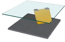 Tischplatte Kristallglas Sockel und Bodenplatte MDF Lack auf Rollen Farben nach Kollektion Fubo, Fraubrunnen, RAL und NCS ohne Zuschlag Zuschlag MAB – Farben CHF 100,- Masse: Mod. 314 60 x 60 x 48 cm Mod. 324 90 x 90 x 37 cm