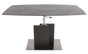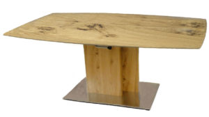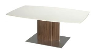 Tischplatte Glas Optiwhite satiniert 4 mm, Holz Furnier, Lack oder Keramik Untergestell Furnier oder Lack Bodenplatte Inox Bootsform 120 x 70 x 47 cm Höhenverstellbar bis 65 cm